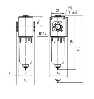 Фильтрующий элемент = 40 мкм (данная тонкость фильтрации используется в оборудование, где не требуется высокое качество воздуха)