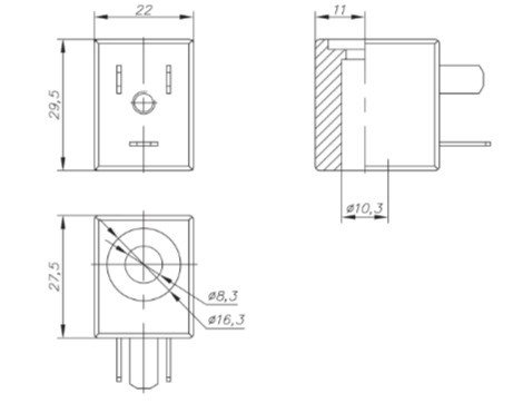 Монтажные размеры22 х 29,50 х 27,5